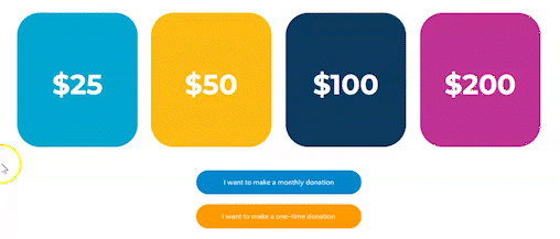 - Offer suggested giving amounts: Giving your donor a frame of reference when deciding how much to give may simplify the decision-making process and lead to larger donations. You can further encourage your donor by highlighting what each amount will fund either through list or a roll-over feature like Shanti used.