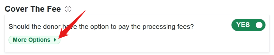 This option allows your donor to cover the processing charges for you so that you receive the full intended donation amount. You may opt-out of offering this option to your donor, or you can make the fee cover required.