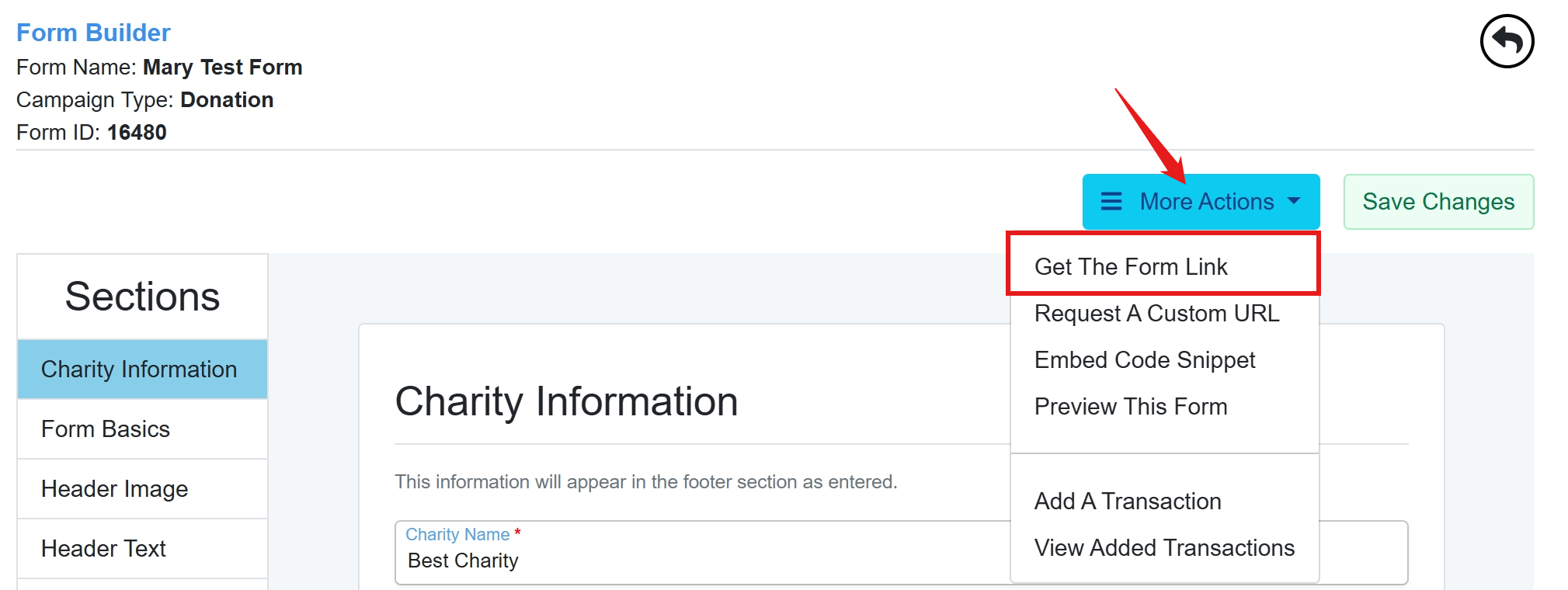 - Go to Fundraising Forms.