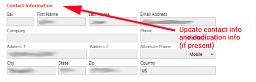 - Change gift dedication information