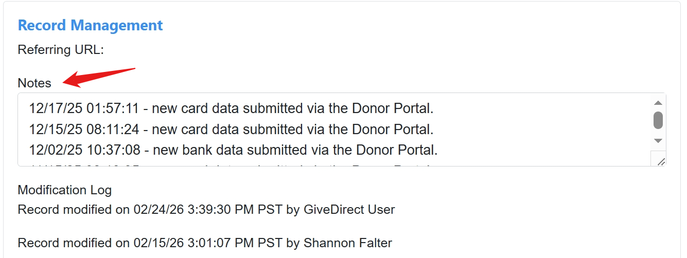 To update information for all future transactions, navigate to the donor's record in Recurring Payments.